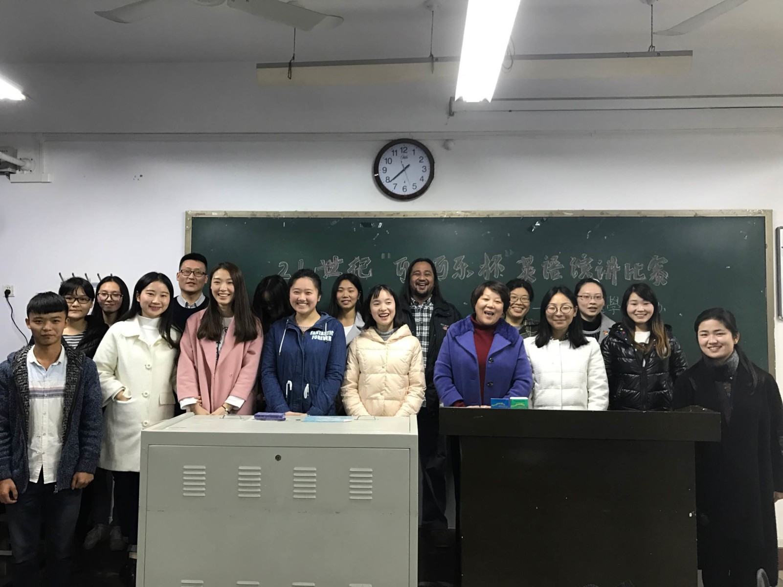教室举行。参与此次比赛的人员有各位评委老师,参赛选手以及各学院学生观众。其中,担任此次评委的老师有3003新葡官方网站刘卫红院长,英语系主任闫秋霞老师等。