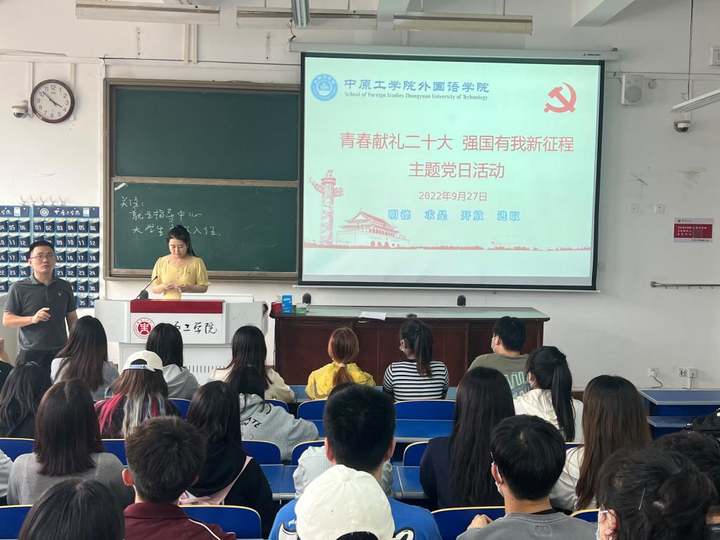 9月27日下午,3003新葡官方网站学生党支部举办“青春献礼二十大,强国有我新征程”主题党日活动,党委副书记常潞炜,学工办主任葛士阳、团委书记刘爽、学院全体学生党员参加。