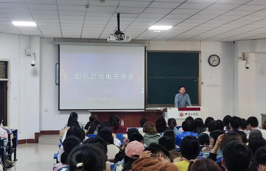 交流会上,郑州译线通翻译有限公司专业讲师刘延昊详细介绍了国际中文通用翻译能力测试(CATTI国际版)内容和基本要求,鼓励学生在校期间,有针对性开展外语综合能力及翻译实务训练,不断提升专业素养,为未来求职就业做好知识储备。河南汇品跨境电商发展有限公司崔权威结合公司业务开展情况,分享了跨境电商行业发展现状和人才需求形势;提醒同学们在学习专业课的同时,明确未来职业发展方向,并持续关注行业发展,开展有针对性地技能训练,不断提升自己的求职能力。