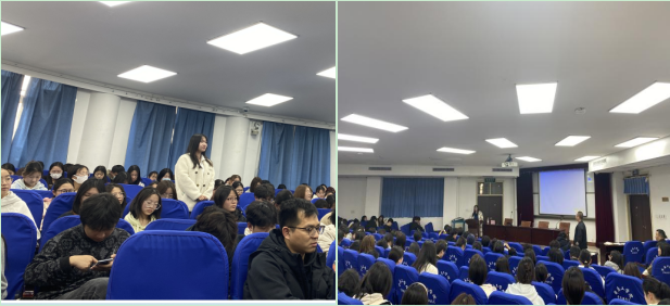 在问答互动环节,与会师生踊跃提问,话题涉及企业翻译项目的参与、合作项目的运行周期、项目管理中的教师角色、海外新媒体运营的前期知识掌握、新媒体运营的自主学习渠道、学生实习实训的报酬支付、实习证明的开具等。
