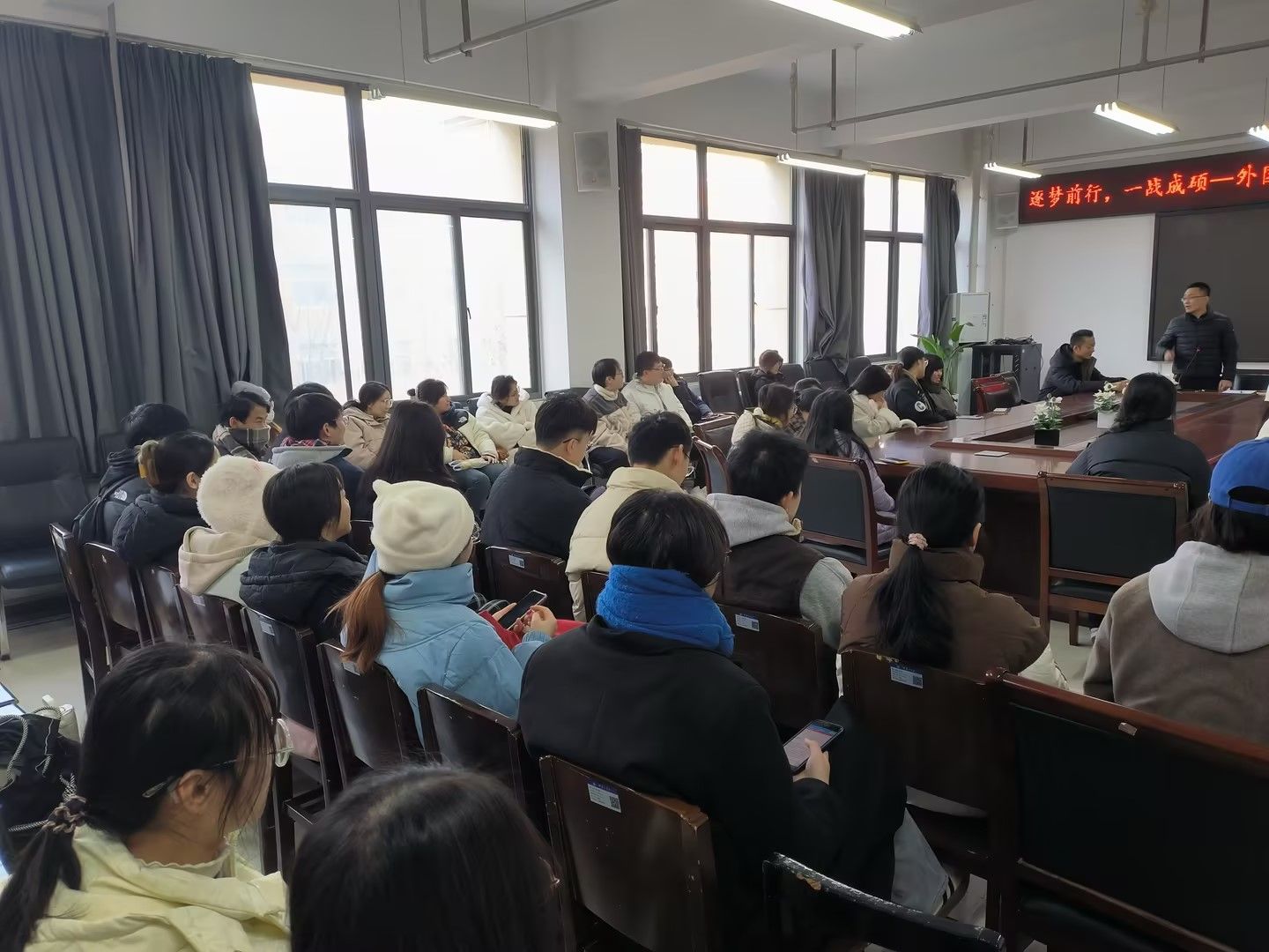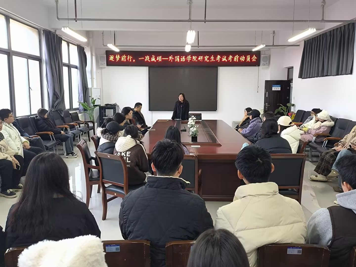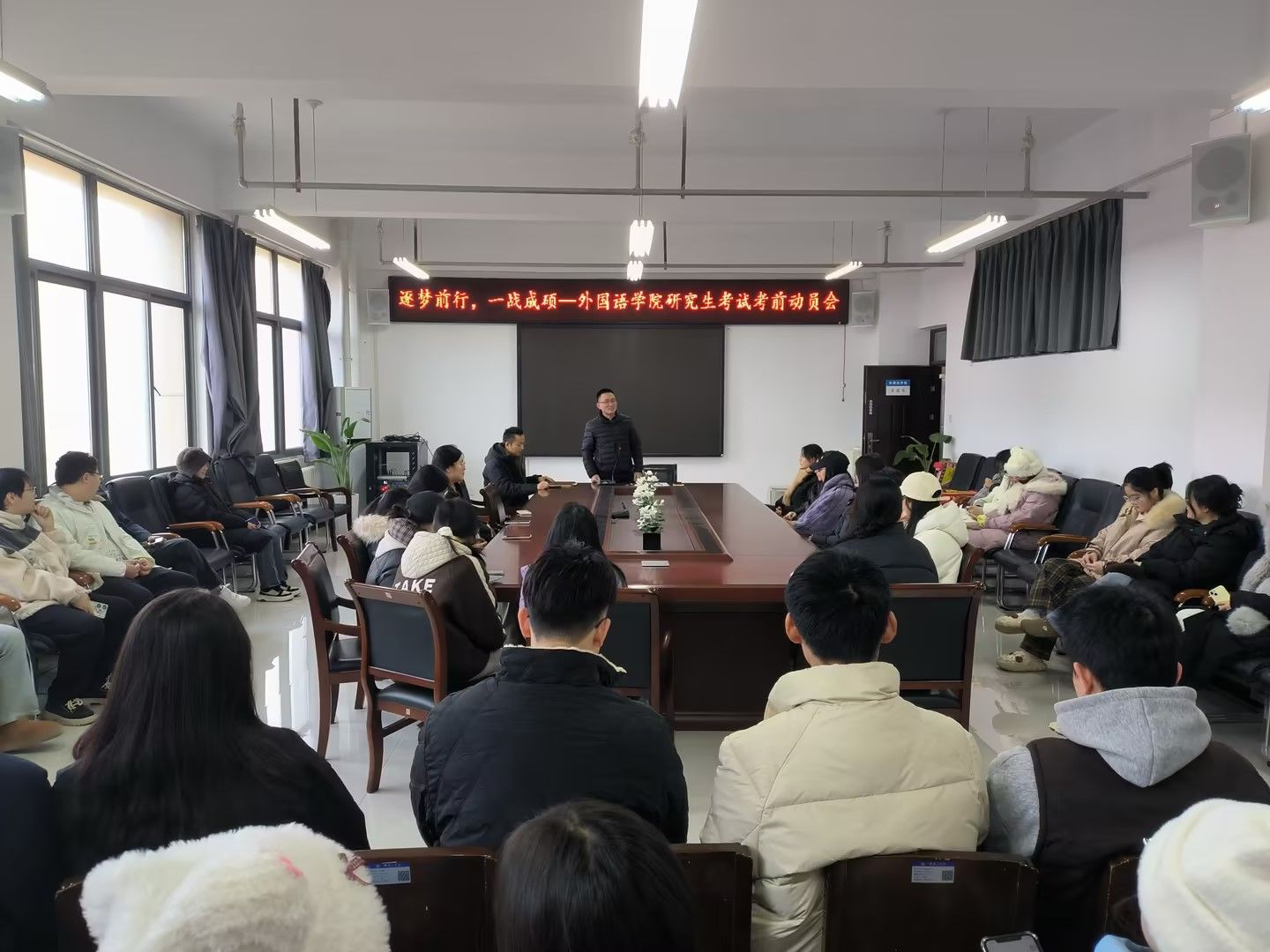 12月13日,3003新葡官方网站“逐梦前行,一战成硕”考研考前动员会在三号组团楼A402会议室开展。学院党委书记柳素平、副书记常潞炜、2021级辅导员葛士阳、王浩权、21级考研学子参加本次活动。