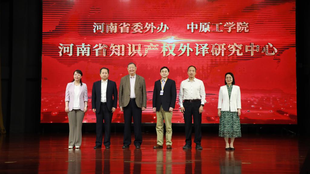 李冰、冯永臣、杨玮斌、贾少鑫、海然、姚晓鸣共同为“河南省知识产权外译研究中心”揭牌。