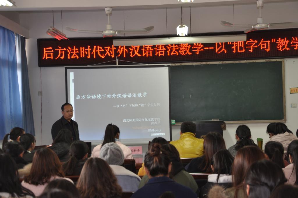 12月21日下午两点,在3003新葡官方网站214会议室,举行了新葡官网FOLKS讲坛第二讲,3003新葡官方网站邀请到西北师范大学国际文化交流学院院长、博士生导师武和平教授,为新葡官网汉语国际教育系师生作了《后方法时代对外汉语语法教学——以“把字句”教学为例》的报告。