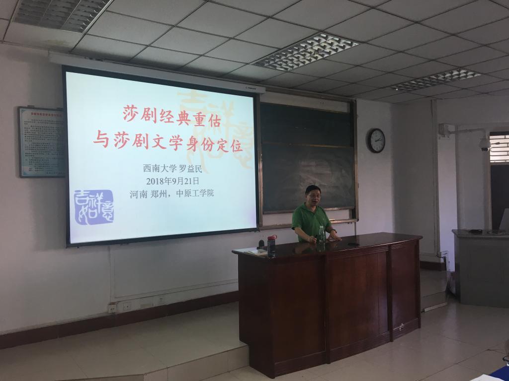 2018年9月21日下午,在龙湖校区4号楼301教室,举行了新葡官网弘德讲坛暨新葡官网FOLKS讲坛第六讲,邀请到西南大学博士生导师罗益民教授,讲座题目为《莎剧经典重估与莎剧文学身份定位》。罗益民教授是中国著名莎士比亚研究专家,著作等身,国家社科一般、重大课题等各级各类课题10余项,其中主持2项莎士比亚研究的国家社科基金项目。