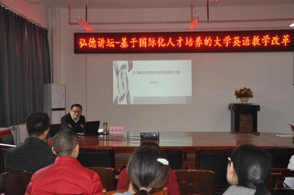 2018年11月13日下午,陈仲利教授应邀为新葡官网教师作题为“基于国际化人才培养的大学英语教学改革”的专题学术报告。3003新葡官方网站院长郭万群、副院长杨道云出席了讲座。