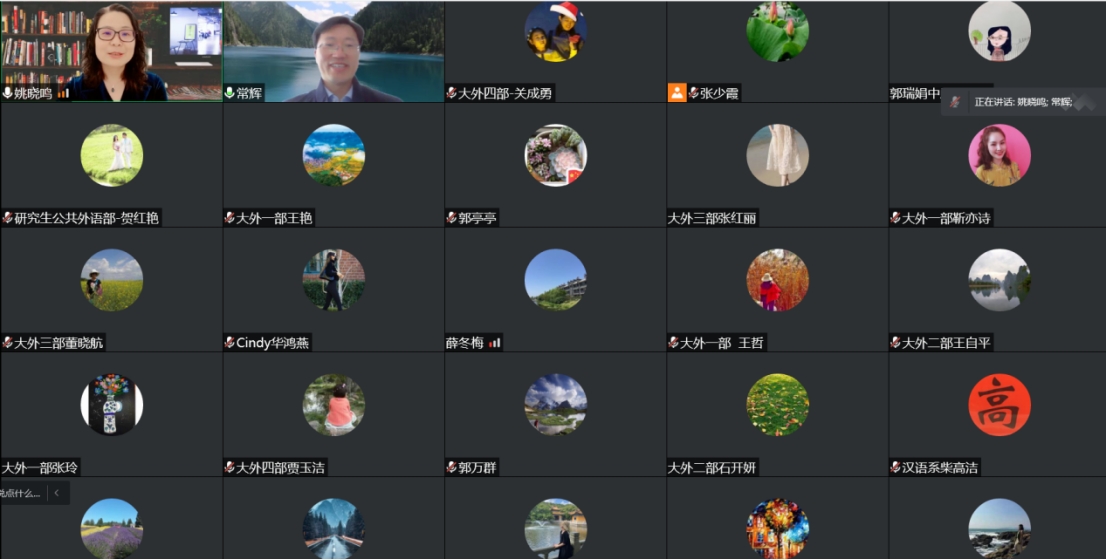 5月19日下午,上海交通大学3003新葡官方网站院长、博士生导师常辉教授应邀以腾讯线上会议的形式,为3003新葡官方网站教师作了题为《大学英语体系构建与改革实践》的讲座。讲座由3003新葡官方网站院长姚晓鸣主持,学院班子成员、大学外语教学部、英语系、MTI教育中心、研究生公共外语教学部全体教师及部分学生聆听了报告。