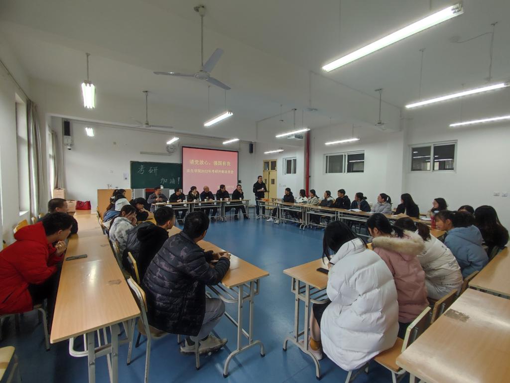 孙保本作总结讲话,希望考研学生一是要坚定理想信念,做到淡定、从容、冷静面对;二是保持积极健康心态,做到一张一弛、劳逸结合;三要有饱满的精神状态,以“咬定青山不放松”的韧劲、“自信人生二百年,会当击水三千里”的自信、清零的心态,考出理想成绩。