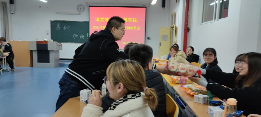 随后,学院教师为考研学生发放了牛奶、饼干、棒棒糖等慰问物品。梦在前方,路在脚下,请党放心,强国有我!同学们纷纷表示,感谢学院老师的鼓舞,这次活动增强他们的考研信心,舒缓了他们的备考压力,他们会带着这份饱含殷切期盼的“加油包”,以更加饱满的热情、更加昂扬的斗志冲刺研考。宣誓大会在“请党放心,强国有我”的铿锵誓言中结束。