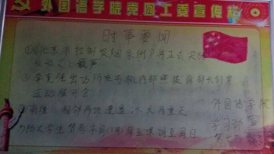 本期板报由学习部完成。内容介绍了本学院最近的安排和一些政治新闻,为了防止大学生替考,新葡官网所有大一学生本周五的课调到周日进行。同时祝愿即将走向高考考场的同学取得一个好成绩。
