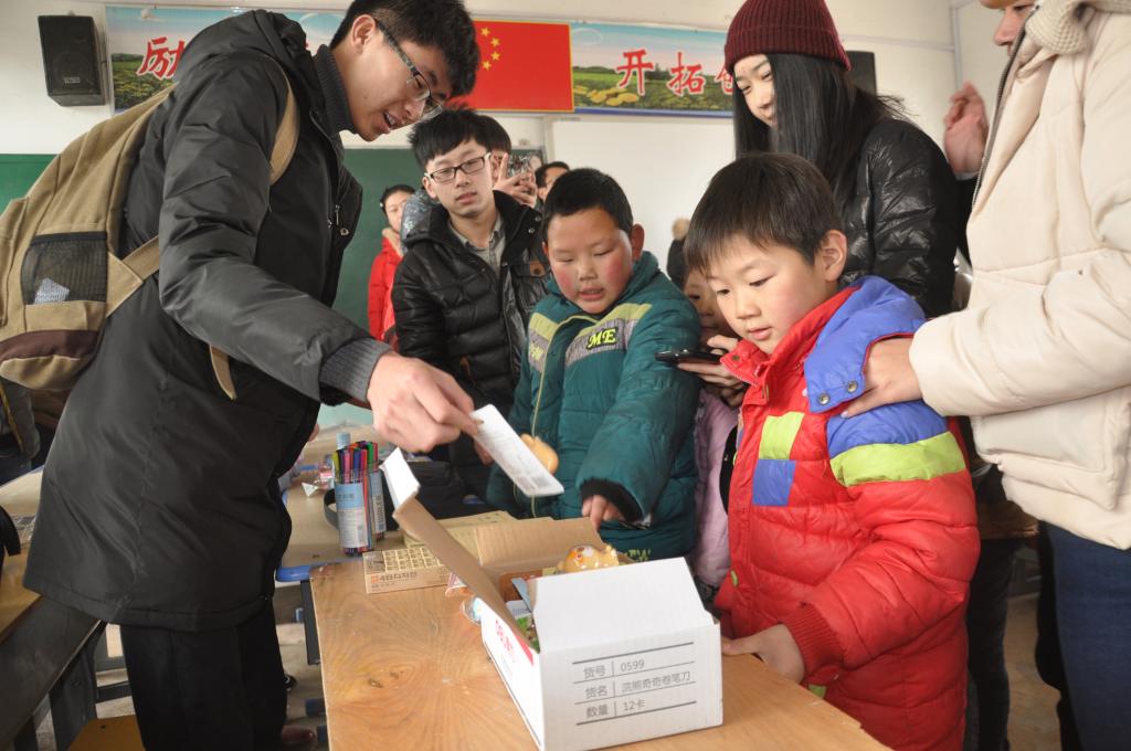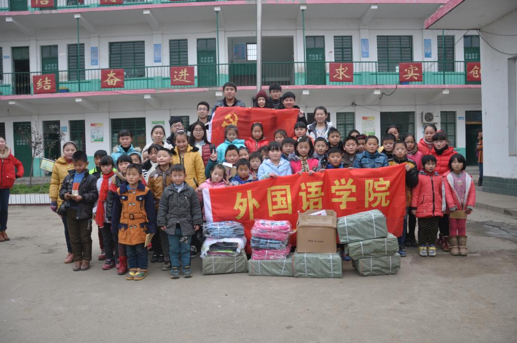 早上七点,带着铅笔、橡皮、作业本、书包等一箱箱文具和300多册课外书,学生党员经过四个小时的路程到达广阳镇辛集小学,受到了辛集小学师生及家长的热烈欢迎。大学生和小学生们一起做游戏,唱歌,竞猜英文单词,现场的气氛热闹非凡。学生党员们设计的活动活泼有趣,小学生充满朝气,争先恐后的抢答,在竞猜单词的环节和唱歌环节,小学生们更是兴高采烈的上台表演,赢得不少奖品。最后互动在小朋友们热烈的掌声和恋恋不舍中落下帷幕。接着,学生党员们参观了辛集镇的新农村建设成果。