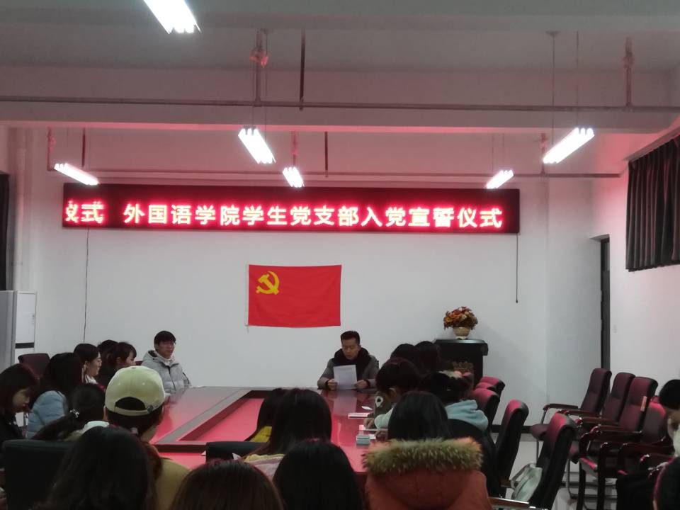 2019年1月10日晚5点,中原工学院3003新葡官方网站预备党员入党宣誓大会在3组团A401顺利举行。3003新葡官方网站学生党支部书记葛士阳和本次发展的全体15名预备党员、正式党员代表参加此次宣誓大会。