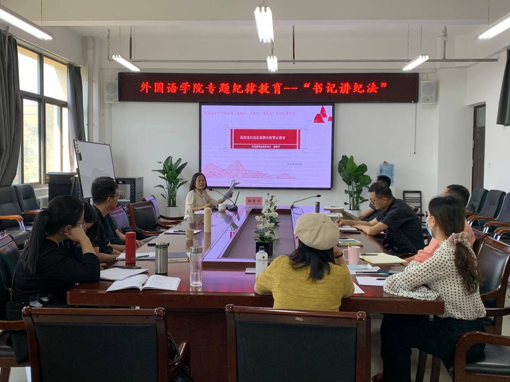 柳素平以高校违纪违法典型案件为例,进行案例分析和法律条文深入解读,要求全体党员干部引以为戒、以案促改,做到严于律己、严负其责、严管所辖,进一步提高政治判断力、政治领悟力、政治执行力,自觉用习近平新时代中国特色社会主义思想统一思想、统一意志、统一行动。她指出,全体教职员工要学法、知法、守法,做遵纪守法的公民,做合格守纪的党员,做师德高尚的老师,做甘为人梯的管理者。