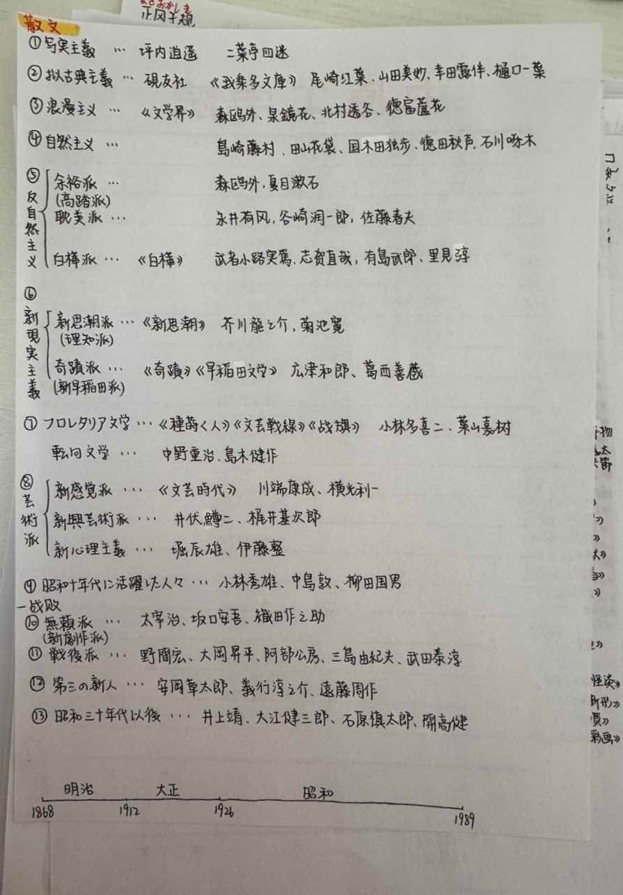 九月份开学后把教育学过完一轮,并开始在图书馆背文学史和教育学,文学史背汉语内容,并要求能做到想着汉语输出日语,教育学主要是浏览知识点,把比较重点的内容在纸上用汉语总结。这个时候徐涛的网课和肖1000已经刷完了,政治方面我没下什么额外的功夫。