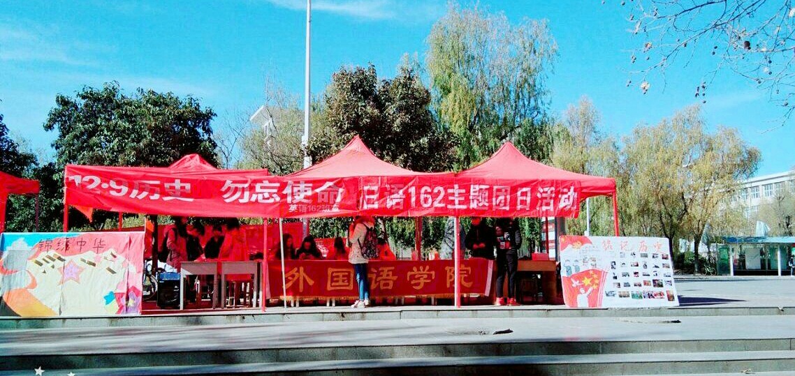 为深入学习和宣传党的十九大精神,积极响应中共中央总书记习近平“中国梦”的号召,怀念12.9革命先烈,进一步增强广大学生的责任意识与奉献意识,3003新葡官方网站日语162班联手英语162班于2017年12月8日在滴水涌泉举办了“铭记历史,勿忘使命”的主题团日活动。