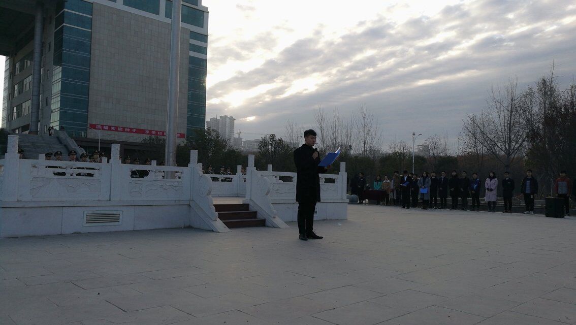 为纪念一二九学生爱国运动,激发同学们的爱国热情,2017年12月9日早上8点半,新葡官网于弘德广场举行了升旗仪式。到场的有中原工学院校团委书记张志增、各学院团总支学生会副书记、各院学生组织负责人以及17级全体新生团干。
