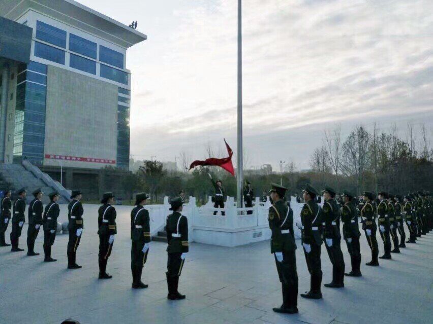 迎着新的一天的朝阳,各位领导同学于弘德广场组织完毕。升旗仪式伊始,中原工学院国旗护卫队踏着整齐有力的步伐,庄严地护卫五星红旗缓缓入场。随着鲜艳的五星红旗冉冉升起,奏唱国歌,全体人员集体行注目礼。