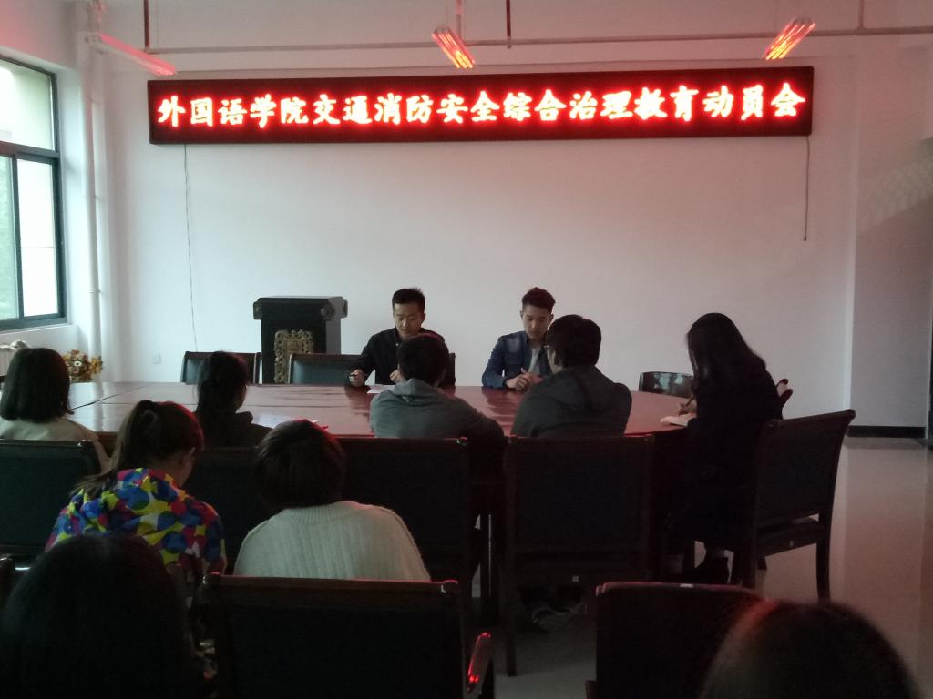 为进一步丰富大学生的交通消防安全知识,加强其交通、消防安全意识,3003新葡官方网站于4月12日下午六点在三号组团楼A402教室召开了3003新葡官方网站交通消防安全治理教育动员会,出席此次会议的有学工办副主任葛士阳,学生会主席郭浩杰、学工办助理以及各年级班长、团支书。