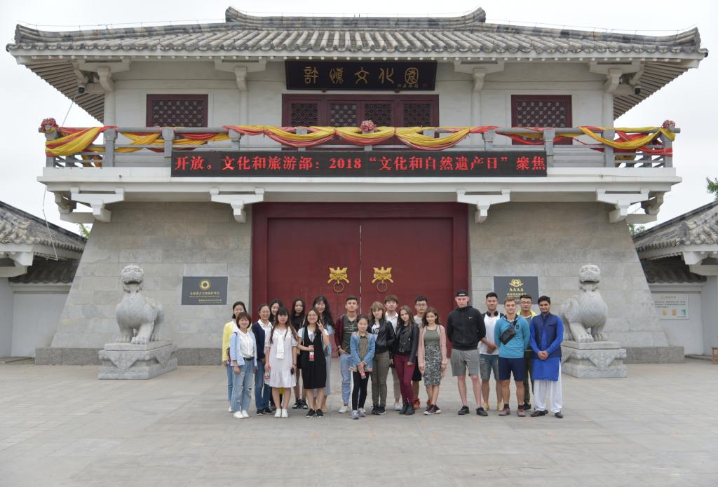 2018年6月9日,来自新葡官网3个国家的7名来华留学生赴河南省漯河市,参观许慎文化园,拜谒文宗字祖,感受博大精深、源远流长的汉字文化。在3003新葡官方网站来华留学生语言教学部副主任彭琰老师的带领下,教师代表孙西瑾老师和10名学生助教一同前往。