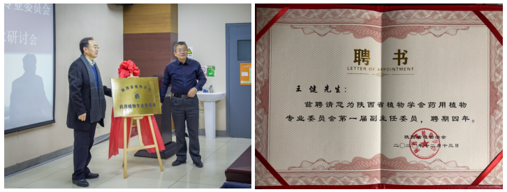 在此次研讨会上,首先由陕西省植物学会理事长岳明教授宣布了陕西省植物学会关于药用植物专业委员会成立的批复,并介绍了专委会组成及章程等。陕西师范大学副校长董治宝和陕西省植物学会理事长岳明为陕西省植物学会药用植物专业委员会揭牌,并为专业顾问颁发聘书。best365中国官方网站院长王健教授被聘为陕西省植物学会药用植物专业委员会副主任委员。