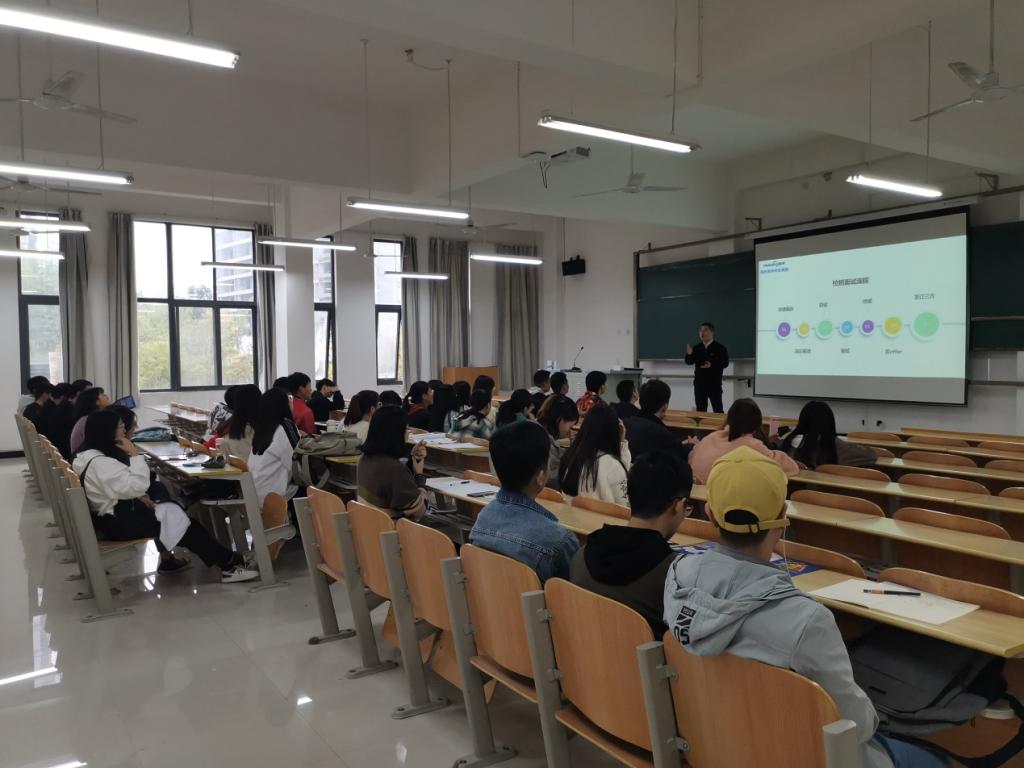 宣讲会上,孙欢部长从企业简介、招聘岗位、薪酬待遇、职业发展及前景规划等方面展开介绍。最后,就同学们关心的“1+2+3+6” 员工培训模式,工作环境等问题做了详细解答。