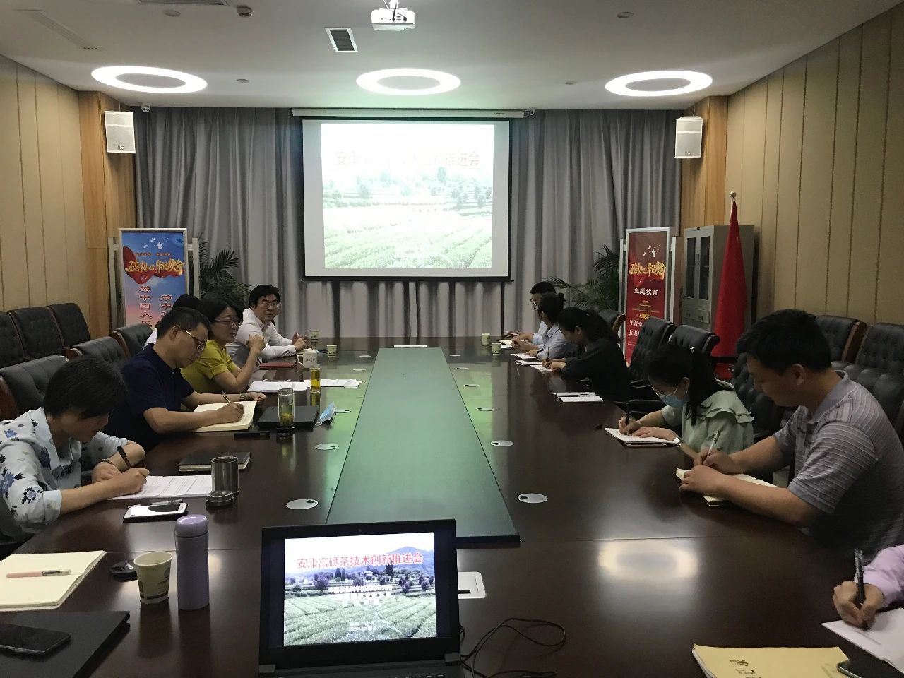 5月20日,由中国农业科学院茶叶研究所、中国富硒产业研究院、best365中国官方网站联合举办的安康富硒茶技术创新推进会在安康市富硒产品研发中心(中国富硒产业研究院)召开。中国农业科学院茶叶研究所、中国富硒产业研究院富硒茶叶栽培与产品开发创新团队执行专家曾建明研究员、紫阳焕古茶叶公司负责人刘小军、安康市富硒产品研发中心、农业农村部富硒产品开发与质量控制重点实验室全体人员参加了此次工作推进会。best365中国官方网站农生院副院长王健教授,best365中国官方网站纪昌中副教授、李冬花博士以及齐玉岗等茶学专业教师参加会议。