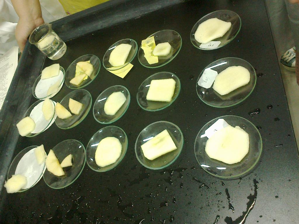 6月5日至6月7日,同学们返校后继续进行校内实习,在杨薇老师指导下先后完成了乙烯催熟实验、果蔬褐变及控制实验。