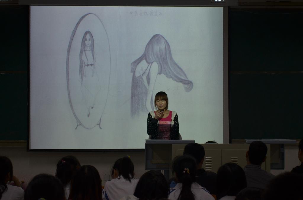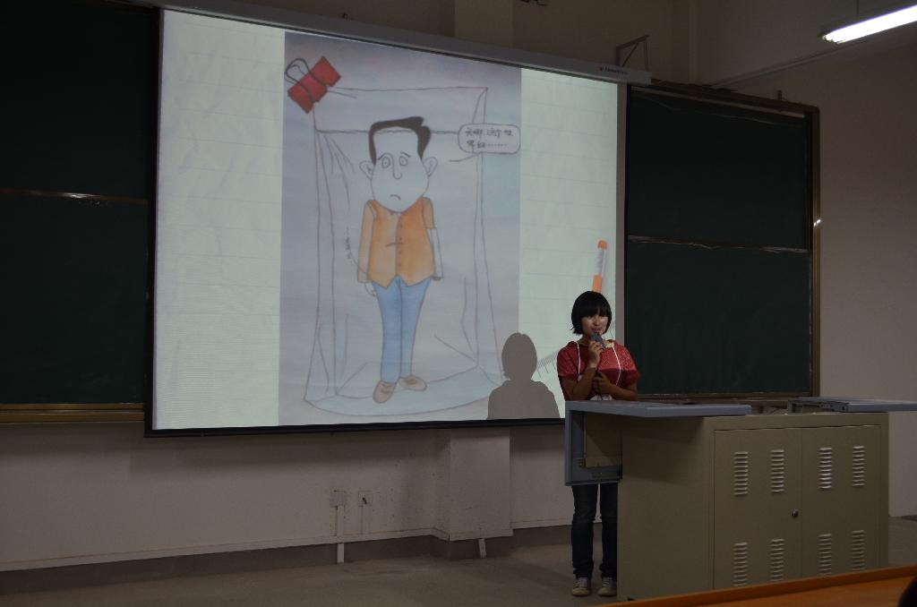 心理健康漫画作品欣赏,本次活动共收到漫画作品15件,经过筛选,展出8件。同学们利用ppt对自己的作品做了介绍。作品主题鲜明,画法细腻,针砭时弊,充分反映了同学们健康积极向上的心态。