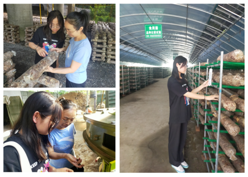 19日上午,在江新华研究员带领下,首先对汉阴益康公司富硒食用菌基地“富硒油菜秸秆栽培富硒姬松茸试验”项目进行现场观测和技术指导。20日下午,赴旬阳县国桦农林科技有限公司针对其香菇种植产量﹑夏季养菌防污染﹑产品销售经营所面临的实际问题,结合团队多年成功经验给出专业的指导和切实可行的解决方案。考察期间,随行的同学们纷纷就“大学生红色筑梦计划创新创业实践项目”与当地企业进行合作相关事宜和公司主要负责人进行面对面深入探讨与交流。学生们参与本次调研亲眼目睹了汉阴益康现代农业公司富硒食用菌种植基地利用安康富硒农作物秸秆标准化种植富硒黑木耳﹑富硒香菇﹑富硒姬松茸及富硒猴头菇等药食用菌种植情况,了解并掌握了富硒食用菌规范化种植技术﹑食用菌类产品储藏﹑加工﹑包装以及销售相关知识与技术,同时也了解到香菇﹑猴头菇袋料种植﹑菌丝培养以及食用菌夏季养菌管护防污染等实用技术。