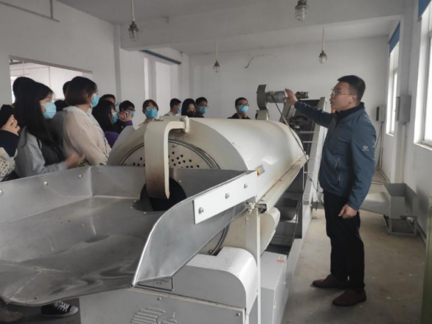 首先,2019级茶学专业同学在专业老师的带领下,进入安康农业科学研究院茶叶加工试验厂进行参观学习,茶叶研究所所长刘运华以及专业教师为同学们讲解了加工富硒绿茶和红茶的连续化、清洁化生产线和特种茶生产设备。