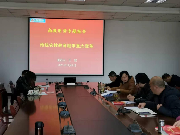2021年12月3日下午,在江北逸夫科技楼大会议室,best365中国官方网站全体教职工开展高教形势专题报告学习活动,本次学习活动由王健院长主持。