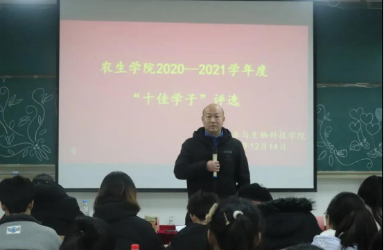 12月14日晚,best365中国官方网站在江北校区1301教室举办了2020-2021学年度“十佳学子”评选活动,党总支书记孙保本、学工办主任谭自力、辅导员金清民、团总支学生分会干部及2021级学生参加。