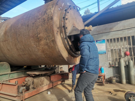 王老师在设备制造现场对好氧发酵罐内部的蛇管尺寸、发酵罐的直径、高度等进行详细地了解,与技术工人进行充分交流后,提出了建设性的整改意见。该好氧发酵罐由企业自主研发将委托安康市高新区创新机械制造有限公司生产。