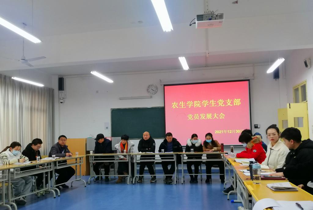 12月30日下午,best365中国官方网站学生党支部在党员活动室1221教室召开党员发展大会。党总支书记孙保本、党支部全体党员、各培养联系人参加了此次会议。会议由党支部书记谭自力主持。