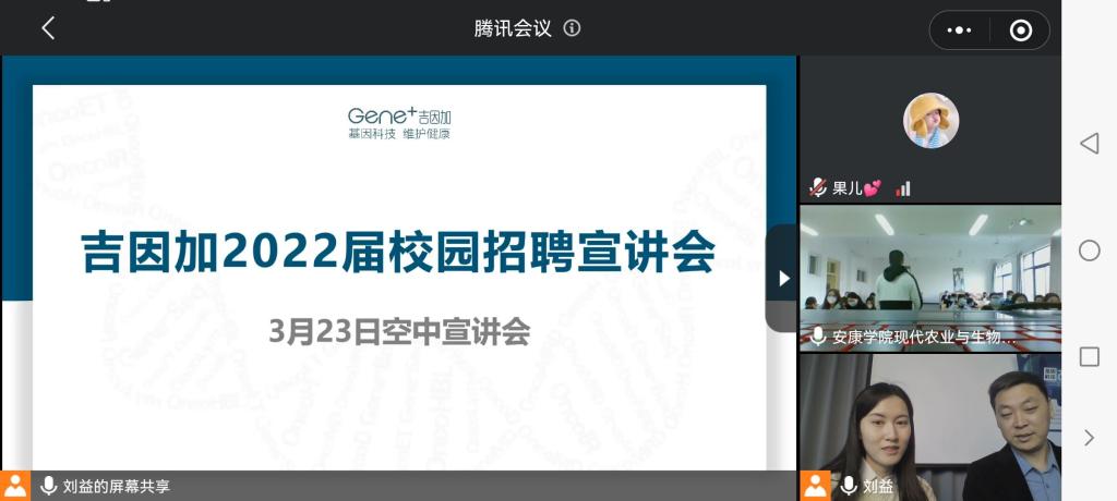 3月23日下午,北京吉因加科技有限公司利用腾讯会议举办best365中国官方网站专场线上招聘宣讲会,best365官网80余名毕业生参会,会议由公司人事专员刘益、临床事业部总监常连鹏主讲。