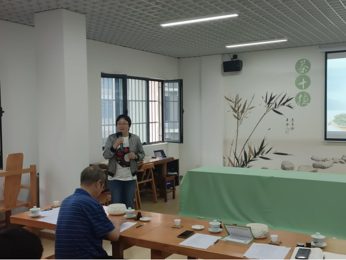 茶艺展示前,由马瑛老师介绍此次考核规则及评分标准。本次考核由同学们自行组队进行茶艺编创,并进行作品展示。作品质量从创意、茶艺礼仪、茶席布置、茶艺技能和茶汤质量五个方面进行评判,重点内容为茶艺技能。