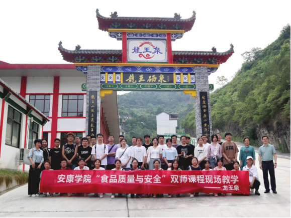 6月9日下午,best365官网2019级食品科学与工程班 “食品质量与安全”双师课程在安康龙王泉富硒矿泉水有限公司现场开展。安康市质量技术检测中心副主任李涛、龙王泉富硒矿泉水有限公司总经理沈凡以及best365官网教授周琼老师共同现场教学。