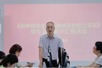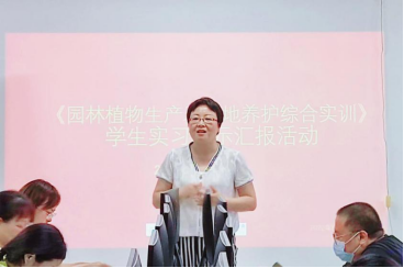 6月24日上午,在秦巴产教融合大楼409教室,以学生为主导,在主持人赵振豪的精心组织与安排下,2020级园林全体学生举行了《园林植物生产及绿地养护综合实训》实习展示汇报,园林系全体教师到场观摩,邀请了教学副院长杨芳教授现场莅临指导。学生按照抽签顺序,12个实习小组分别制作精美、图文并茂的PPT和个性化的小视频,对实习专题内容、实习收获与感受、实习建议等进行了展示与汇报。