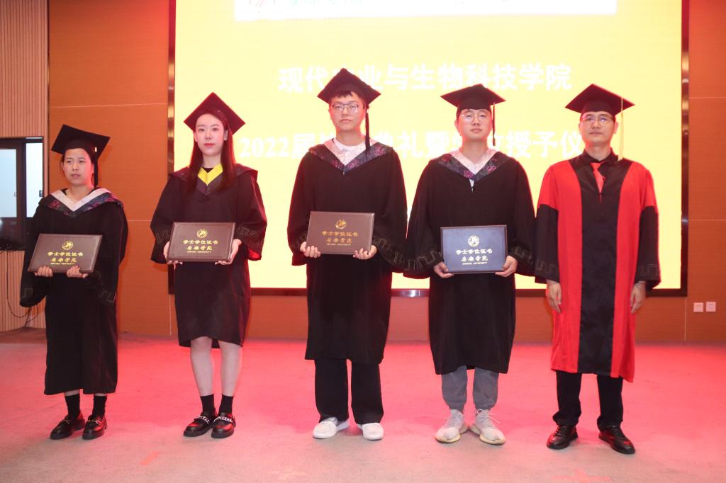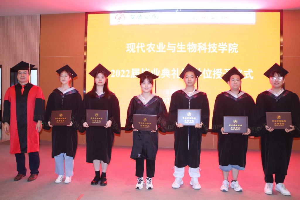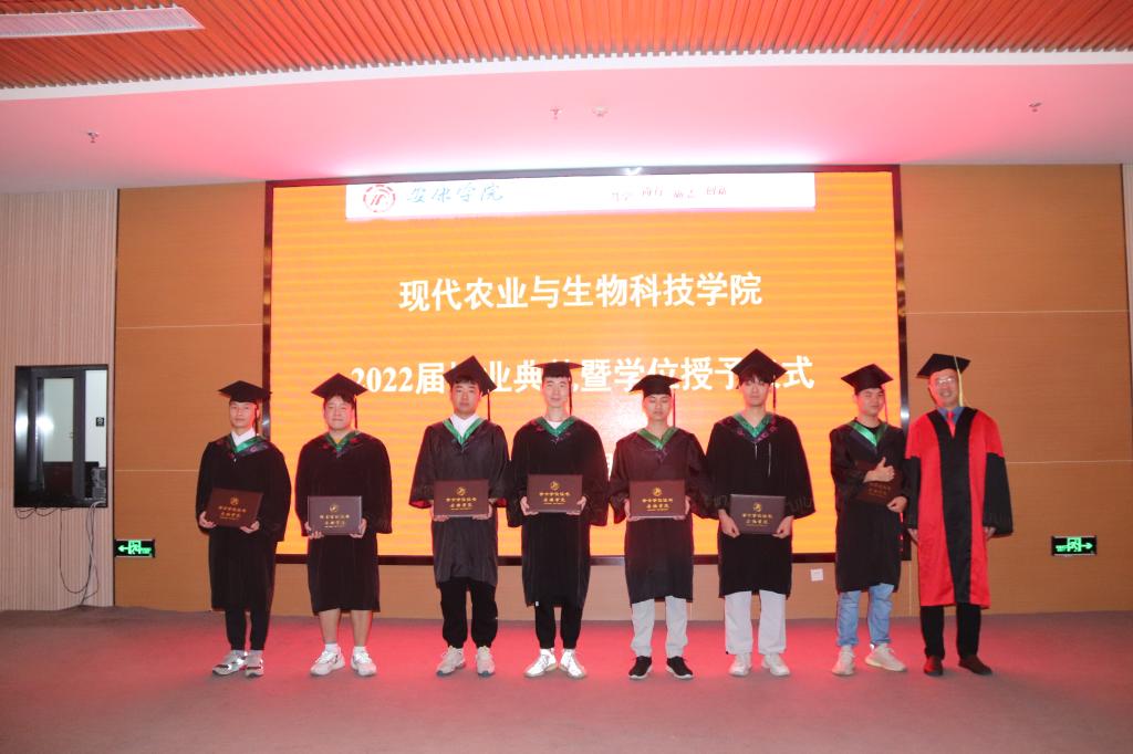 王健、杨松杰、朱新鹏、谢满超、段展展、梁如为获得学士学位的毕业生代表一一正冠拨穗、授证并合影留念。典礼在全体师生的合影下落下帷幕。