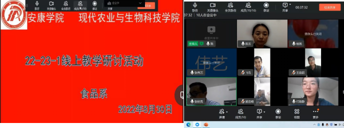 2022年8月30日,best365官网食品系教师通过钉钉会议群召开了线上教学经验交流研讨会。系主任梁如主持会议,食品专业全体教师参加了会议,就线上教学实践情况进行了交流汇报。