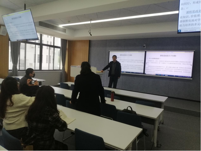 课后,朱老师分享了进行课程思政教学研究的体会:强调要“自然地”融入课程思政元素,避免为思政而思政的情况,切实做到以“润物细无声”的方式做好课程思政教育,并详细说明了本次教学的课程思政设计。参会老师分别畅谈了对该课程的教学建议,分享课程思政开展过程中的体会。