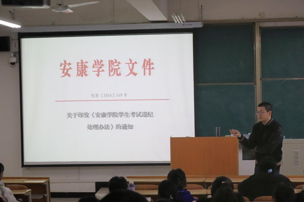 杨芳对《best365中国官方网站学士学位授予条例》《best365中国官方网站本科学生学籍管理规定》中考试违纪违规的有关规定做了深入的解读,讲事实,举例子,以往届学生作弊的实例,警示教育学生,强调诚信考试的重要性和考试违纪违规的严重后果。
