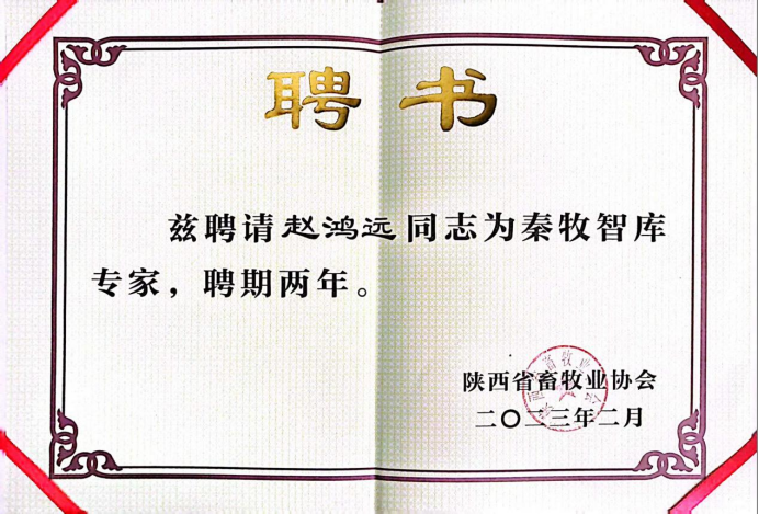 2023年2月25-26日,“陕西省畜牧业协会三届二次理事会、协会成立十周年庆典、秦牧智库成立大会暨秦牧智库2023新春报告会”在西安隆重召开,best365官网教师赵鸿远博士作为秦牧智库专家代表应邀参加本次大会。