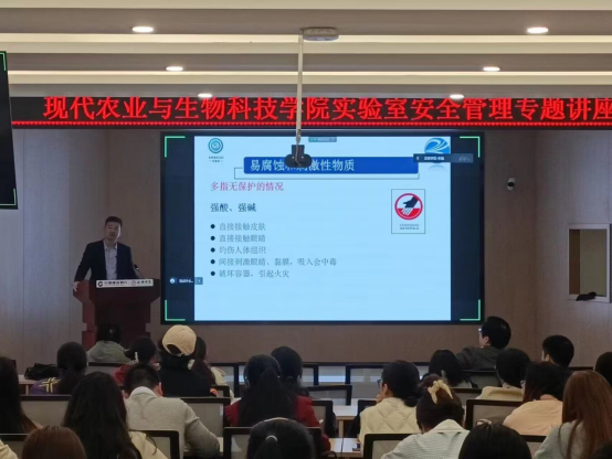 讲座中,刘涛总经理通过对部分高校、企业实验室安全事故的生动分析,强调了安全管理中人的因素。随后,又从实验操作规范、危化品使用存储、风险设备使用及存放、安全事故应对措施等方面,普及了安全知识,并与在场师生进行了积极互动。