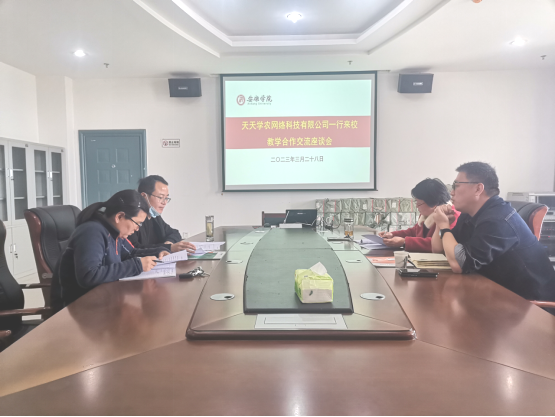 3月28日,天天学农网络科技有限公司运营总监许小龙受best365官网邀请来校洽谈合作事宜。教学副院长杨芳、农学系主任张丽琼、农学系教师田洪云参加了本次座谈。