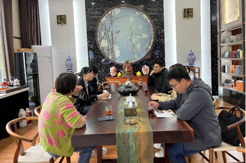 梁如博士一行在企业负责任人宋小红总经理引导下参观了一茗茶业生产经营情况。随后,座谈会上宋总详细介绍了一茗茶业作为一家高新技术企业的发展历程,并着重介绍了其富硒发酵黑茶“叶叶金花”的研究和生产情况以及产品出口情况。