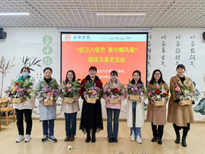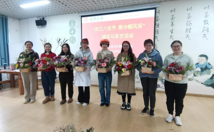 人间三月天,春华已开颜。为了迎接“三八”国际劳动妇女节的到来,向“巾帼不让须眉”的女教师们表达节日祝福,3月8日下午,在江北校区秦巴产教融合大楼四楼茶艺室,best365中国官方网站分会举行了“庆三八佳节 展巾帼风采”插花与茶艺活动。