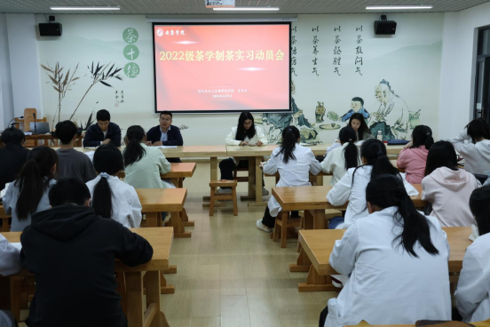 4月9日下午,在产教融合大楼茶艺室召开了茶学2022级制茶实习动员会,旨在进一步提高学生的实践技能,为即将开始的制茶实习做好准备。会议由茶学系主任李冬花主持,茶学系教师齐玉岗、吴冲、袁月、常娜及2022级茶学专业全体学生参会。