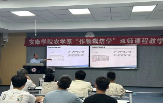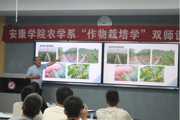 5月16日,农学系在江北1208教室开展了农学专业《作物栽培学》双师课程教学活动。此次活动邀请了汉滨区农业技术推广站高级农艺师张开军为农学22级同学讲授“设施蔬菜栽培管理关键技术”的专题。