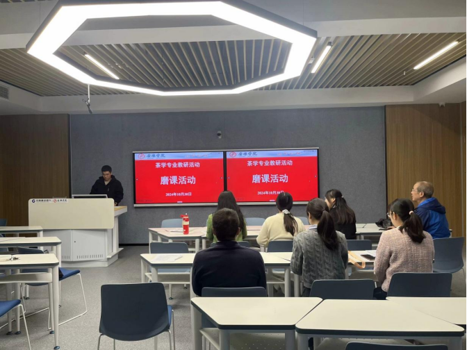 为了进一步提升茶学系教师的教学水平和育人能力,茶学系于10月30日在乡村振兴学院培训研讨教室2开展了教研磨课活动。本次活动由系主任李冬花主持,教学督导谢满超教授,茶学系教师齐玉岗、马瑛、吴冲、袁月、常娜、尹旭超、程晓梅和贺心茹参与了磨课活动。