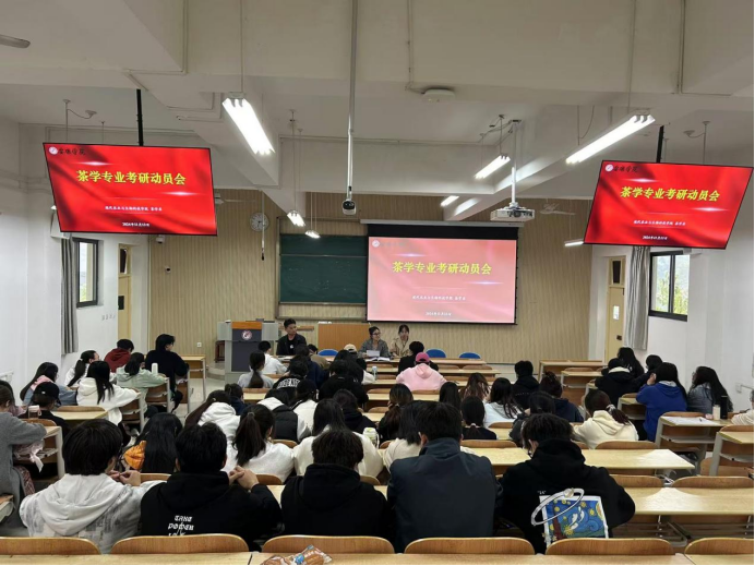 为了进一步提高茶学专业学生的考研积极性,明确考研方向。茶学系于2024年11月13日下午,在1号教学楼1215教室召开了考研动员会。茶学专业2022级和2023级全体学生以及茶学系教师李冬花、常娜、尹旭超参加会议,会议由系主任李冬花老师主持。